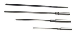 整体硬质合金枪钻的直径范围是.039“[1.00mm]至.200”[5.08mm]及更大,长度可达11.25“[286mm]。这种刀具更大的好处是它的刚性。当刀具切入材料时,以及在钻孔时,它会受到扭力而产生变形,这对硬质合金合金是极其有害的,会导致过早磨损,而整体硬质合金枪钻可有效地克服这种扭转变形。
